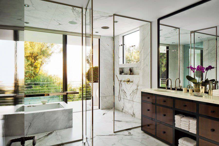 Мраморная плитка для ванной комнаты или прихожей является хорошим решением для людей, которые не хотят вкладываться в дорогую гидроизоляцию и проводить долгие часы уборки. Мрамор прост в уходе и устойчив к механическим повреждениям. Он используется в современных и деревенских интерьерах, хорошо сочетается с металлом, деревом, а также с пластиком и современными интерьерными решениями.