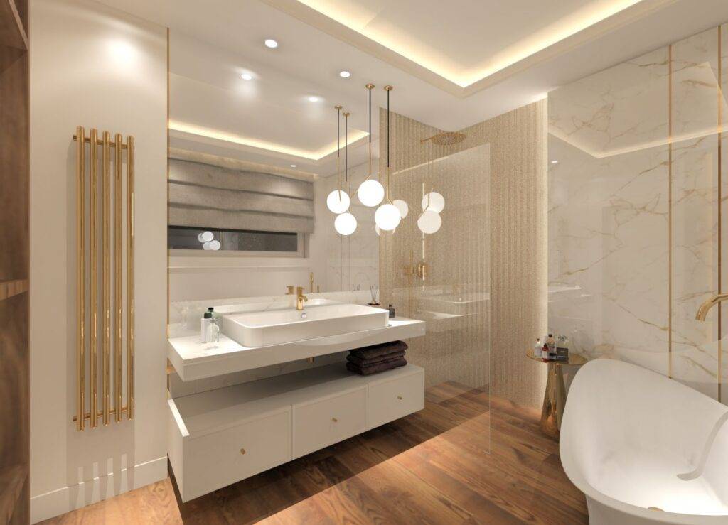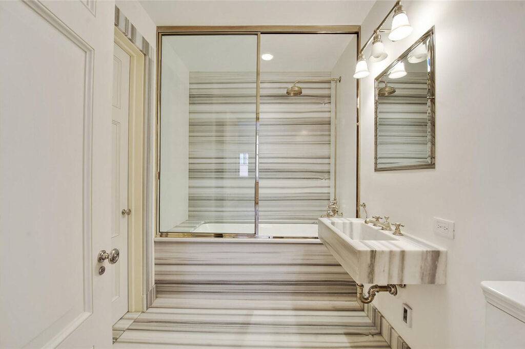 Разнообразие видов, оттенков природного материала, его отличная сочетаемость позволяют находить мрамору применение в любых дизайнерских стилях. На фото ванных в мраморной плитке можно увидеть классические оформления в направлениях: