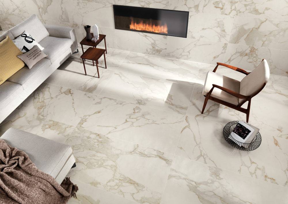 Новейшие разработки позволяют получить красивую имитацию с «натуральным» мраморным рисунком. Такие изделия выглядят в интерьере очень эффектно – мраморную плитку используют для пола
