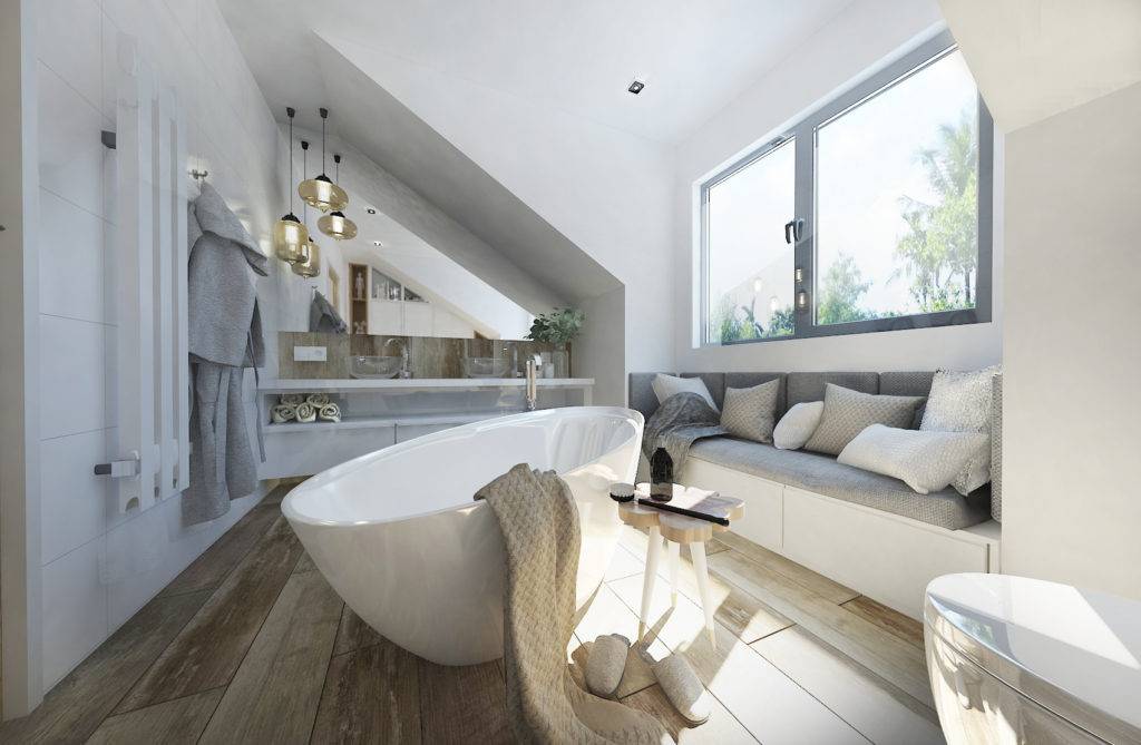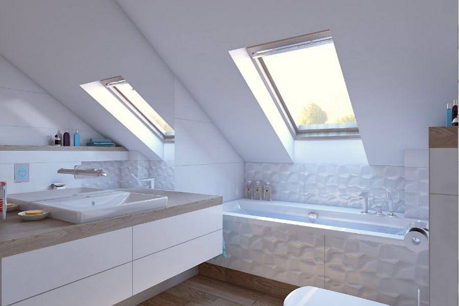 Стоит отметить, что если ваше мансардное окно подвергается сильному солнечному свету, особенно с юга или запада, помните об эффективной защите от его избытка, чтобы ванная летом не перегревалась.