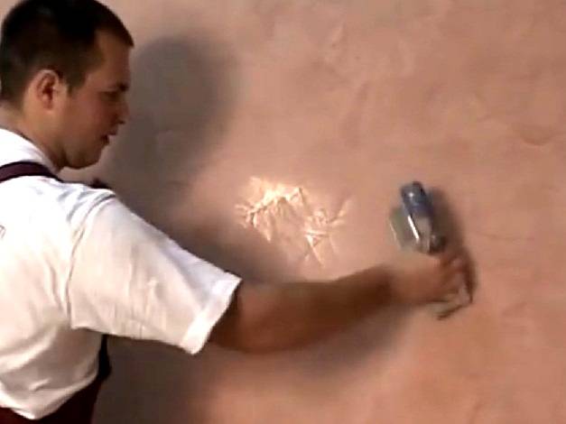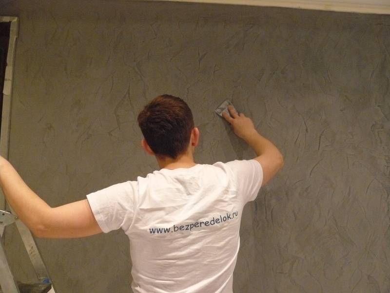 Лучше всего работать вдвоем, в режиме конвейера: один наносит состав на стену, второй придает пятну нужную форму. Так быстрее и эффективнее, особенно если учесть, что отделка ВШ даже чисто физически – сложный процесс. Не говоря уже о творческой стороне.