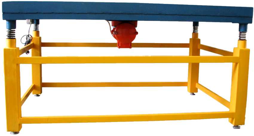 Между ножками и столом должны располагаться пружины, которые подбираются индивидуально, в зависимости от предполагаемой нагрузки и количества используемых форм. Крышка стола должна иметь бортики, поскольку во время вибрации все формы будут стремиться в одну из сторон, куда есть небольшой уклон по уровню.