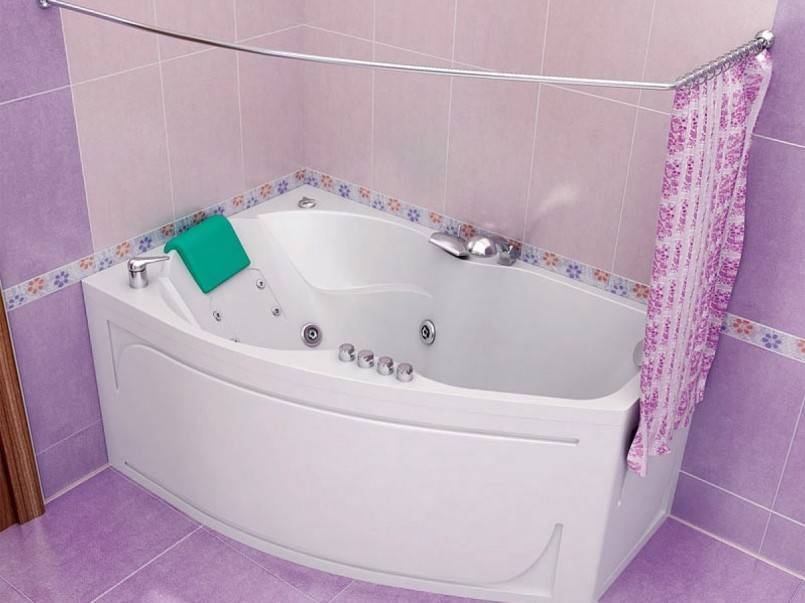 - штанга с несколькими прямыми углами (п-образная угловая штанга). Такая модель подходит для такой комнаты, где ванна установлена лишь по одной стене.