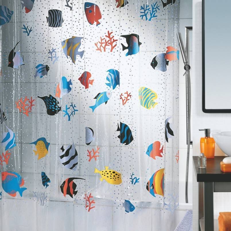 Веселые шторки стоит выбирать, если в доме есть дети. Им это точно придется по вкусу. Это позволит провести время в ванной с ребенком с пользой для его интеллекта. Он может считать или читать надписи или изображения.