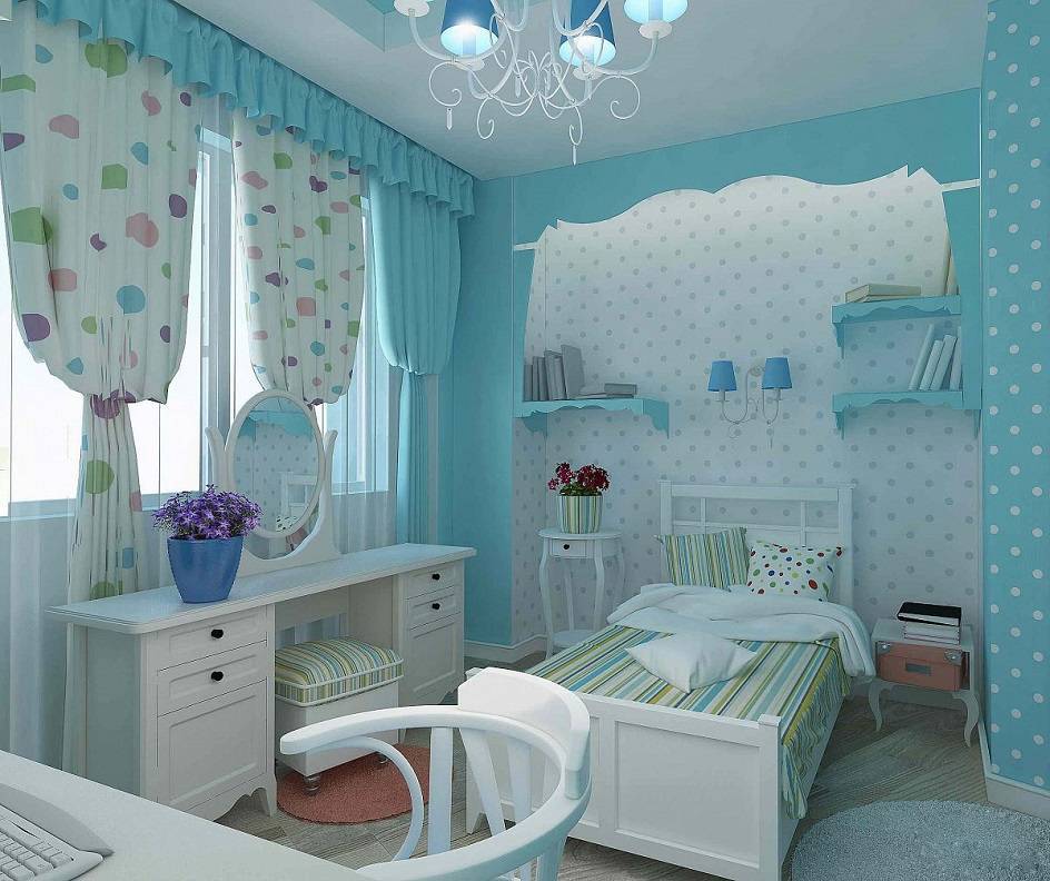 Отделка. Для оформления стен берут матовую краску либо обои — однотонные или с флористическими принтами. Пол покрывают светлым деревянным паркетом или же каменной плиткой. Ковровые покрытия и ковры практически не используются — комната должна выглядеть просторной, наполненной воздухом. В декоре стен часто можно увидеть геометрические и цветные орнаменты