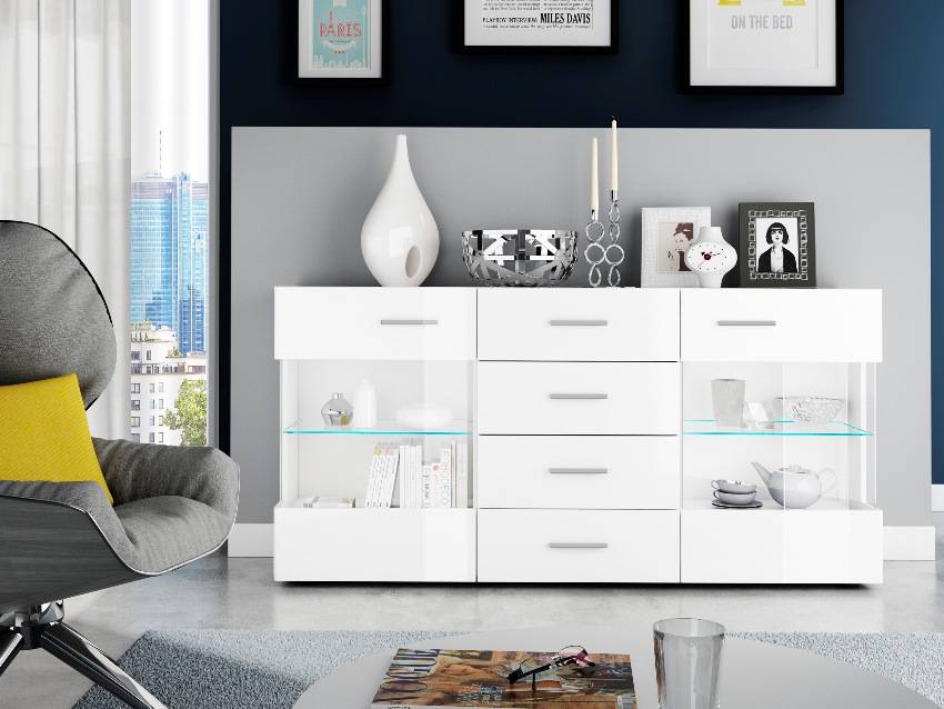 Обратите внимание! Сегодня большой популярностью пользуются белые комоды в гостиную. Нейтральный окрас подходит как для классического интерьера, так и для современных дизайнов помещений