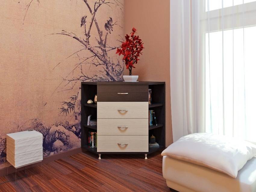 Комоды угловые в гостиной могут быть трапециевидными или треугольными