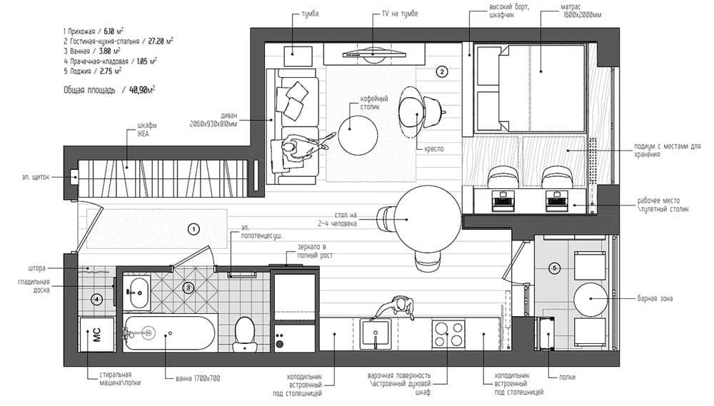 Другой вариант – сделать из «хрущевки» квартиру-студию.