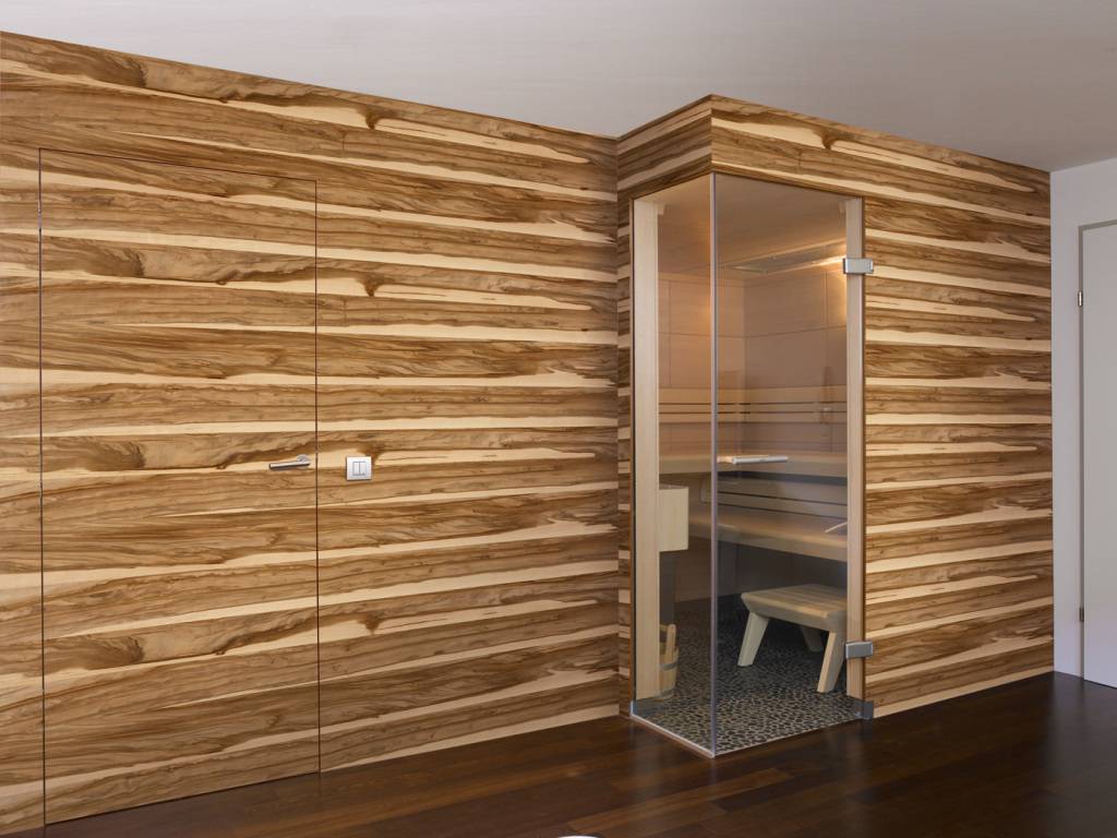 шпонированные панели, которые своей фактурой и внешним видом похожи на натуральное дерево. Для достижения такого эффекта на поверхность плиты наносится шпон натурального дерева толщиной до 3 мм;