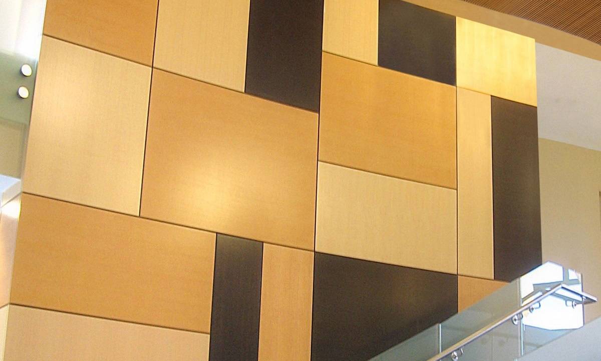 Цветовая гамма панелей очень разнообразная. Наибольшей популярностью пользуются расцветки, имитирующие структуру дерева, например, дуб или орех. Выглядят они очень похоже на натуральный массив, однако, стоят значительно дешевле. Вес изделий гораздо меньше чем у натурального дерева.