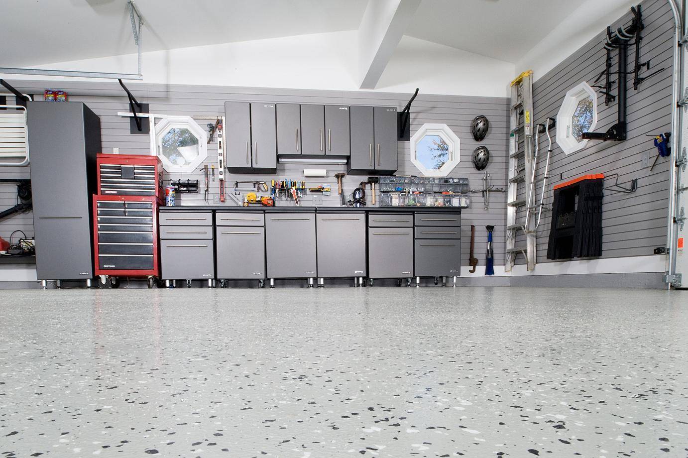 Оставив расстояние между полом и нижней полкой стеллажа около 30 сантиметров, вы гораздо упростите влажную уборку гаража, которая теперь не будет занимать много времени.