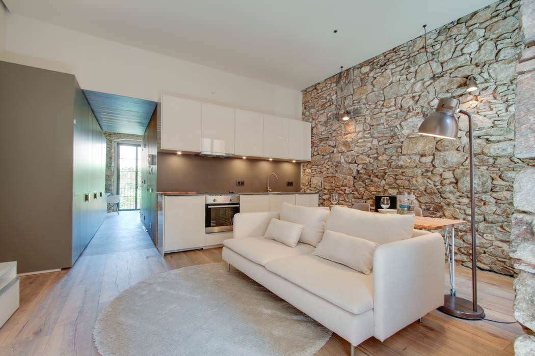 Чтобы интерьер в помещении с камнем получился гармоничным, его необходимо разбавить более мягкими материалами. Это могут быть декоративная штукатурка, обои, окрашенные стены и т. д. Большое количество грубых поверхностей в помещении может создать не желаемый эффект, сделать атмосферу холодной и неуютной.
