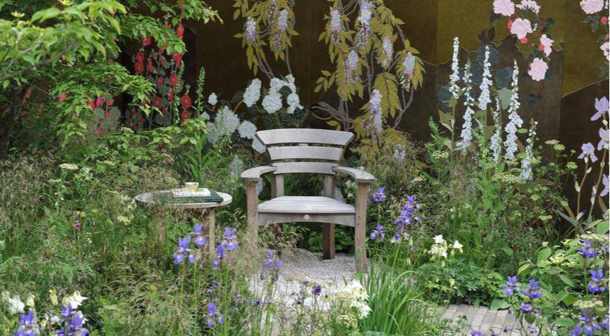 Создавая уединённую «комнатку» на своём участке, следует позаботиться о том, чтобы вокруг находились своеобразные шторы, созданные из вьющихся растений, которые распространяются по специальной конструкции. Ширма также может быть сделана из натурального бамбука. Воздушность и лёгкость подобного сооружения будет создавать единение с природой и абсолютную гармонию, но при этом ограждение прекрасно справится и с тем, чтобы защитить хозяев от посторонних глаз и сильных ветров.