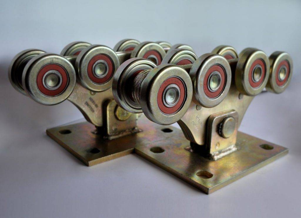 Чтобы установить каркас, сначала необходимо на фундамент выставить ролики таким образом, чтобы дальний из них не выбивал заглушку при закрытии ворот. Затем на них ставится готовая рама, которую требуется выровнять до необходимого положения. Если все установлено должным образом, то платформы тележек, концевой ролик и уловители привариваются к конструкции.