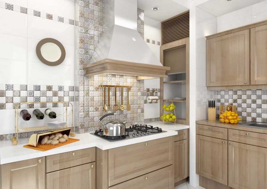 Чаще всего выбирают светлые тона. Благодаря этому пространство визуально становится шире. Оформление под дерево подходит для классического стиля, а также для стилей кантри, эко. В этом варианте можно подобрать дешевую плитку на фартук.