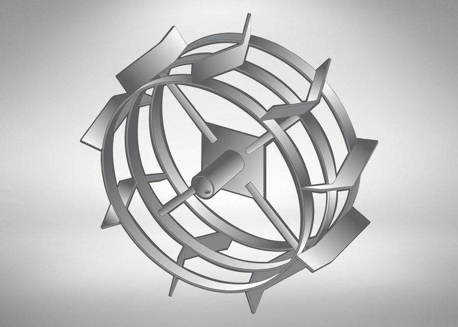 - внутри емкости вертикально располагаем колесо диаметром, равным ее ширине. Оно будет активироваться валом;