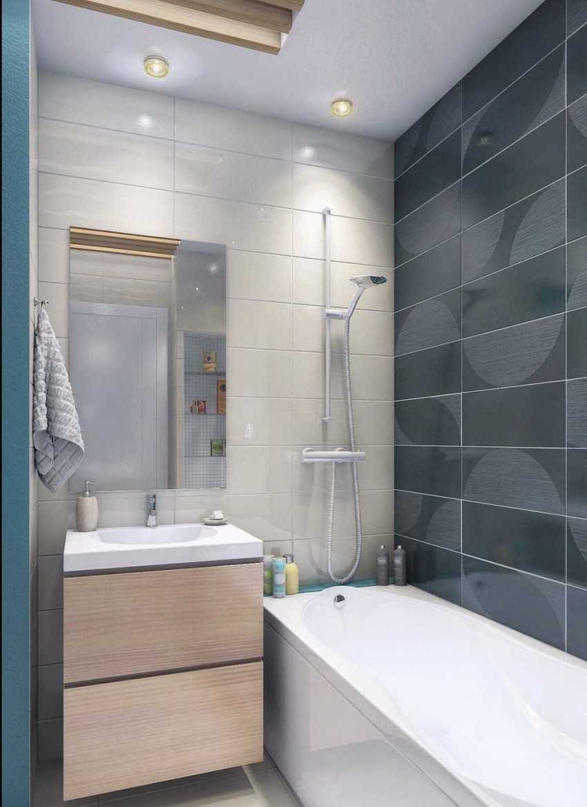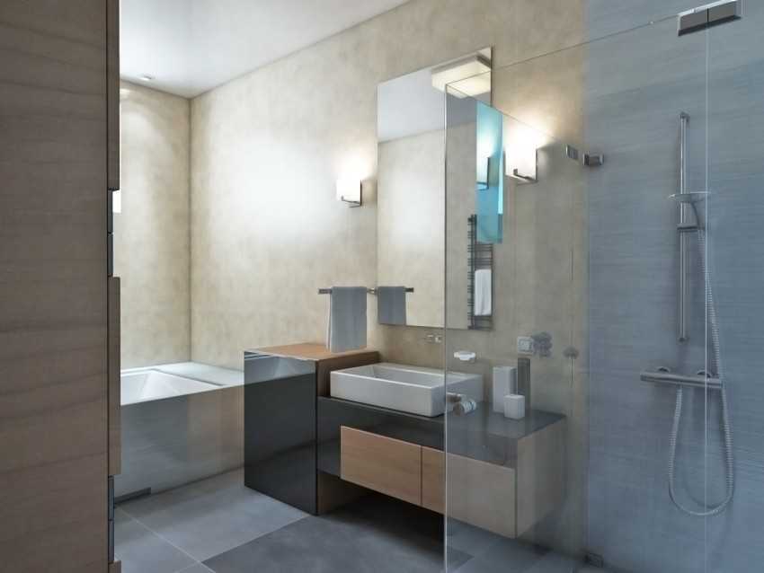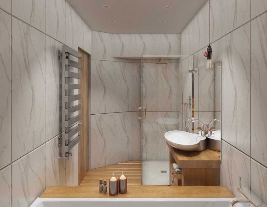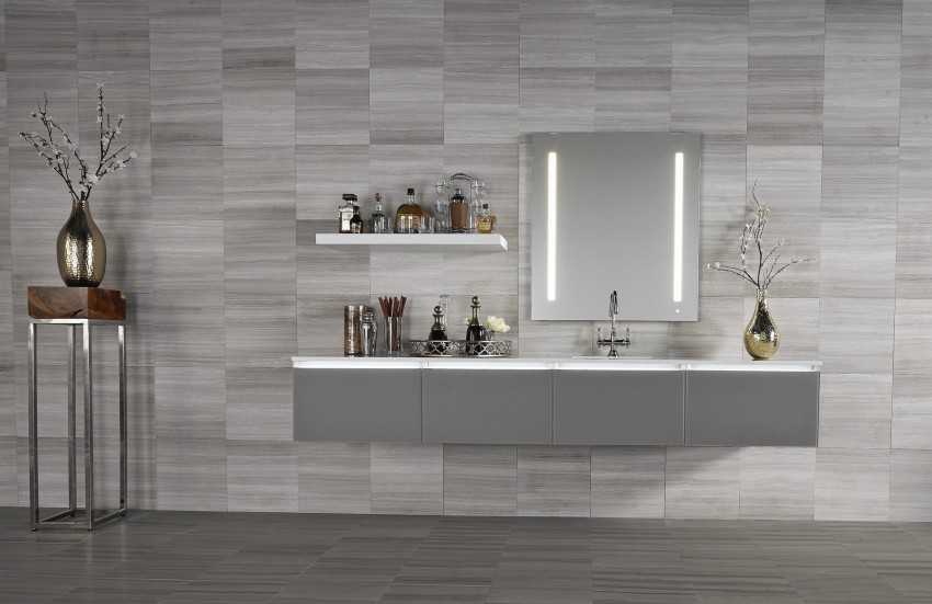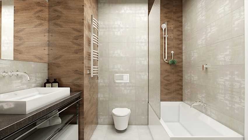 Для ванных комнат маленькой площади идеальным решением является плитка размером 200×200 мм или 200×300 мм. При кладке прямоугольной плитки в горизонтальном направлении визуально комната удлиняется. Если класть вертикально, то визуально вытягивается.