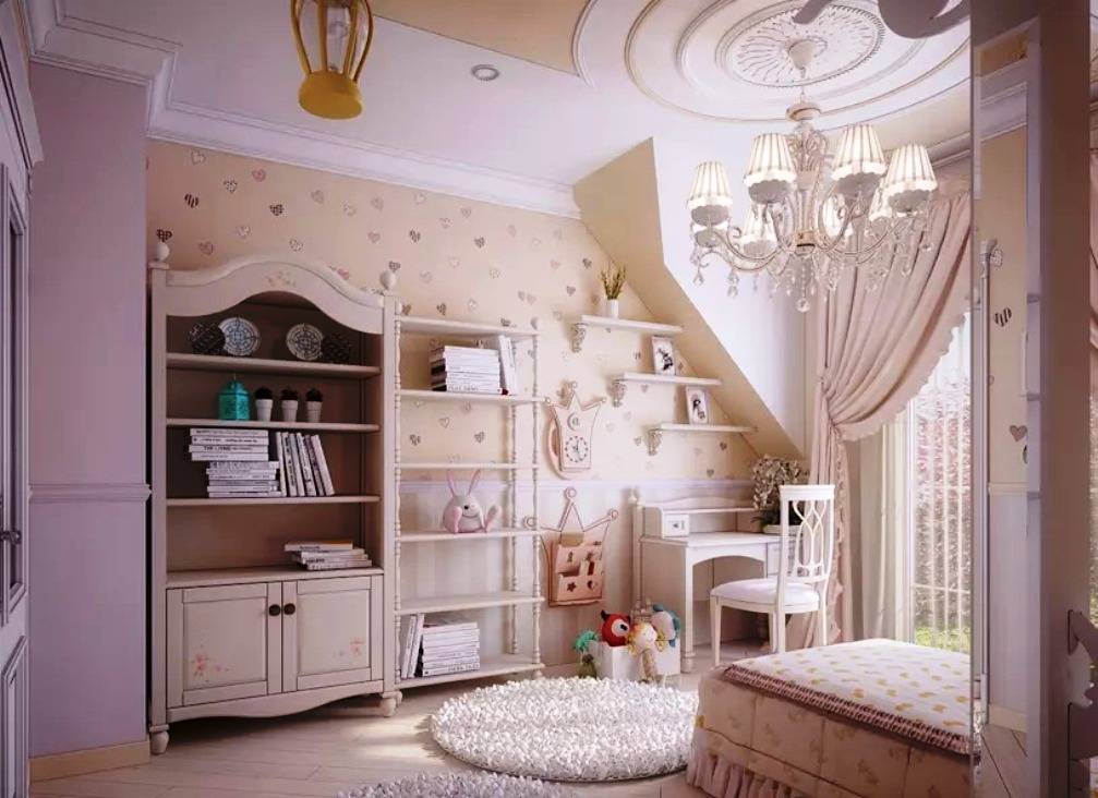 Светлую палитру оттенков обоев выбирают чаще всего для классического стиля интерьера. Такая детская комната, как правило, нравится всем членам семьи, однако, оттенки белых и кремовых обоев чаще выбирают для комнаты девочек. На таком фоне хорошо смотрится дорогая деревянная мебель, коллекции кукол и другие декоративные украшения.