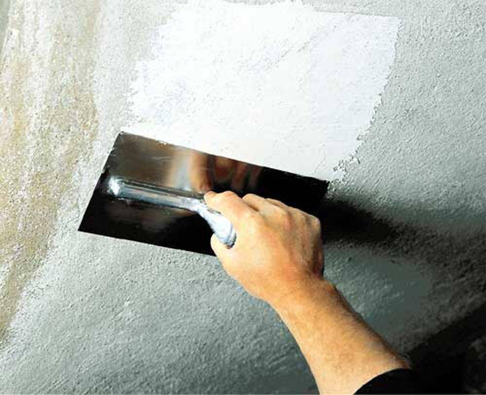 Перед проведением отделочных работ необходимо будет тщательно подготовить потолочную поверхность к обработке. В ходе подготовительных работ с помощью широкого шпателя с поверхности потолка сначала удаляется старая штукатурка, после чего с потолка смывается не только побелка, но и оставшиеся после её удаления меловые разводы.