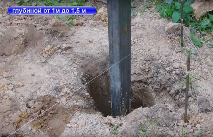 По соображениям устойчивости от воздействия промерзания (оттаивания) и силы ветра высота профнастила забора влияет на глубину основания фундамента столба. Рекомендуется устраивать основание под столбы на глубину сезонного промерзания грунтов. С юга до Курска до 1 м, в районе Москвы до 1.5 м. В песчаных природных слоях глубина выбирается по конструктивным соображениям, но не менее 0.7 м.