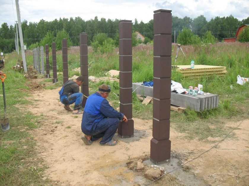 Конструкция забора из профнастила со столбиками