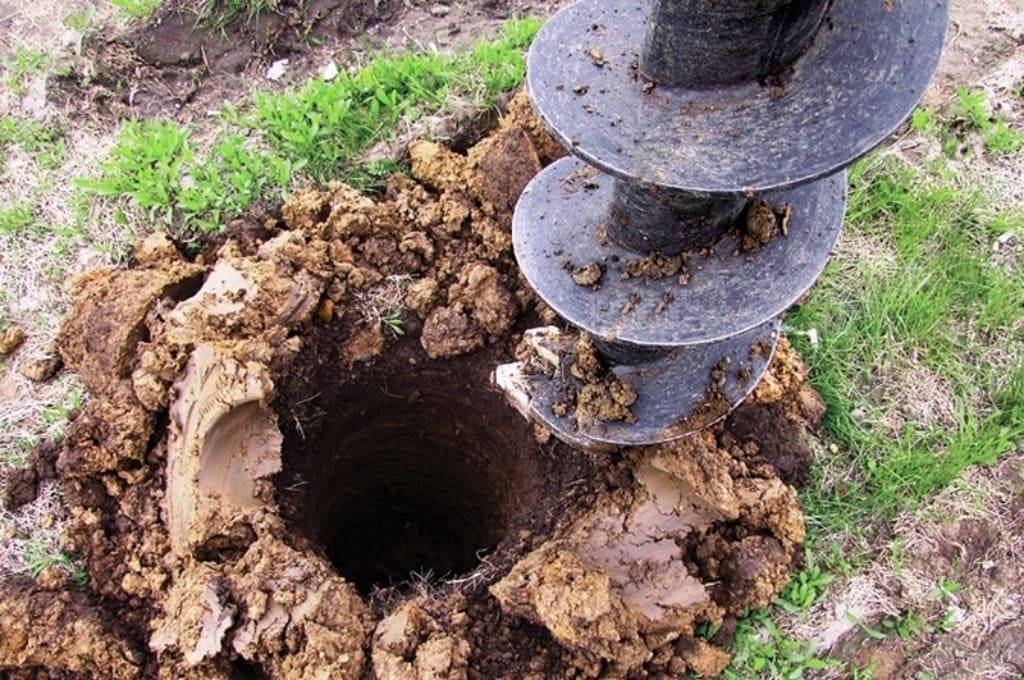 - Используя садовый либо рыбацкий бур по предварительной разметке разрабатываем скважины на глубину 1.5 метров. Необходимо чтобы глубина скважин была на 10-20 см больше глубины промерзания почвы в вашем регионе, при таком расположении столбы не будут подвергаться выталкивающим нагрузкам от пучения грунта.