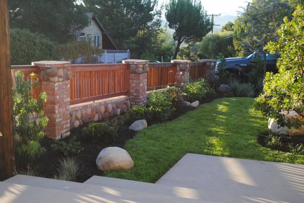 Такое ограждение сочетает в себе несколько видов сырья: например камень и дерево или кирпич, и металл. Последний вариант прослужит значительно дольше и требует систематического ухода (обработка антисептиком, покраска и т.д.).