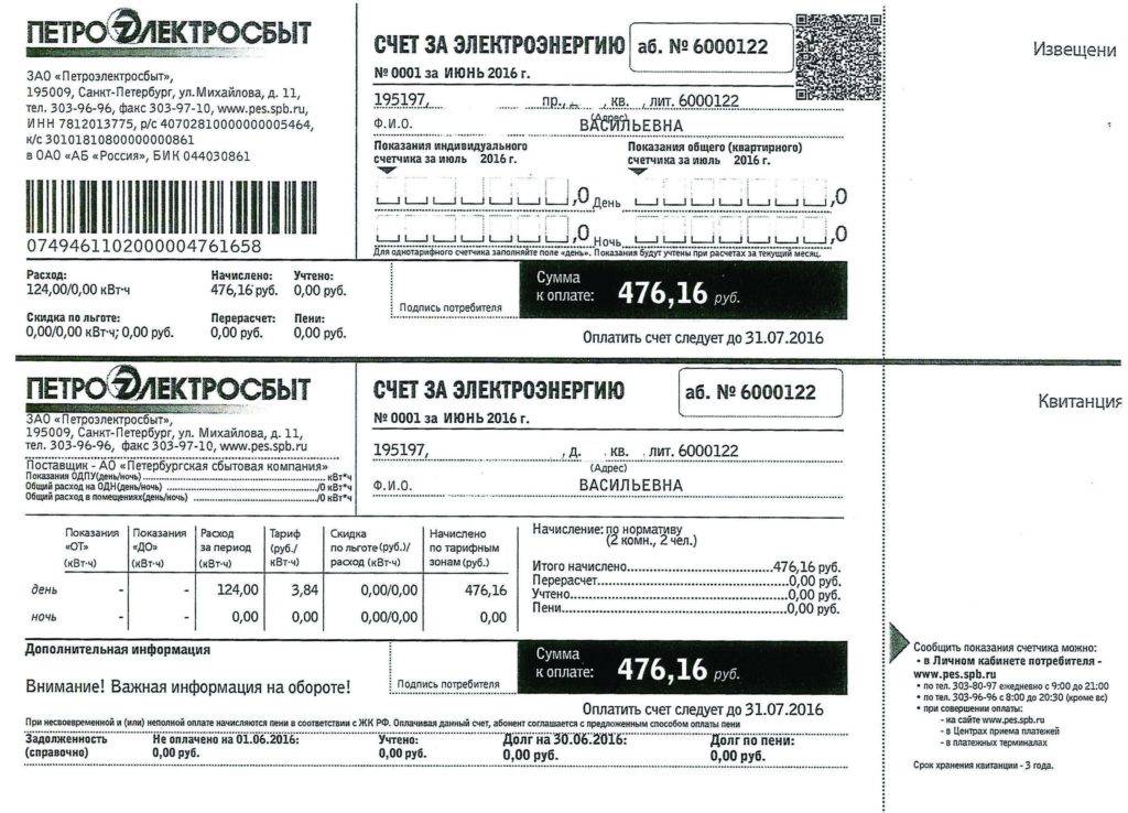 Следует учитывать, что составление акта не является основанием для начисления платежей по счетчику. Снабжающая организация обязана внести изменения в договор поставки. О внесении изменений собственник может узнать при получении квитанции на оплату электроэнергии.