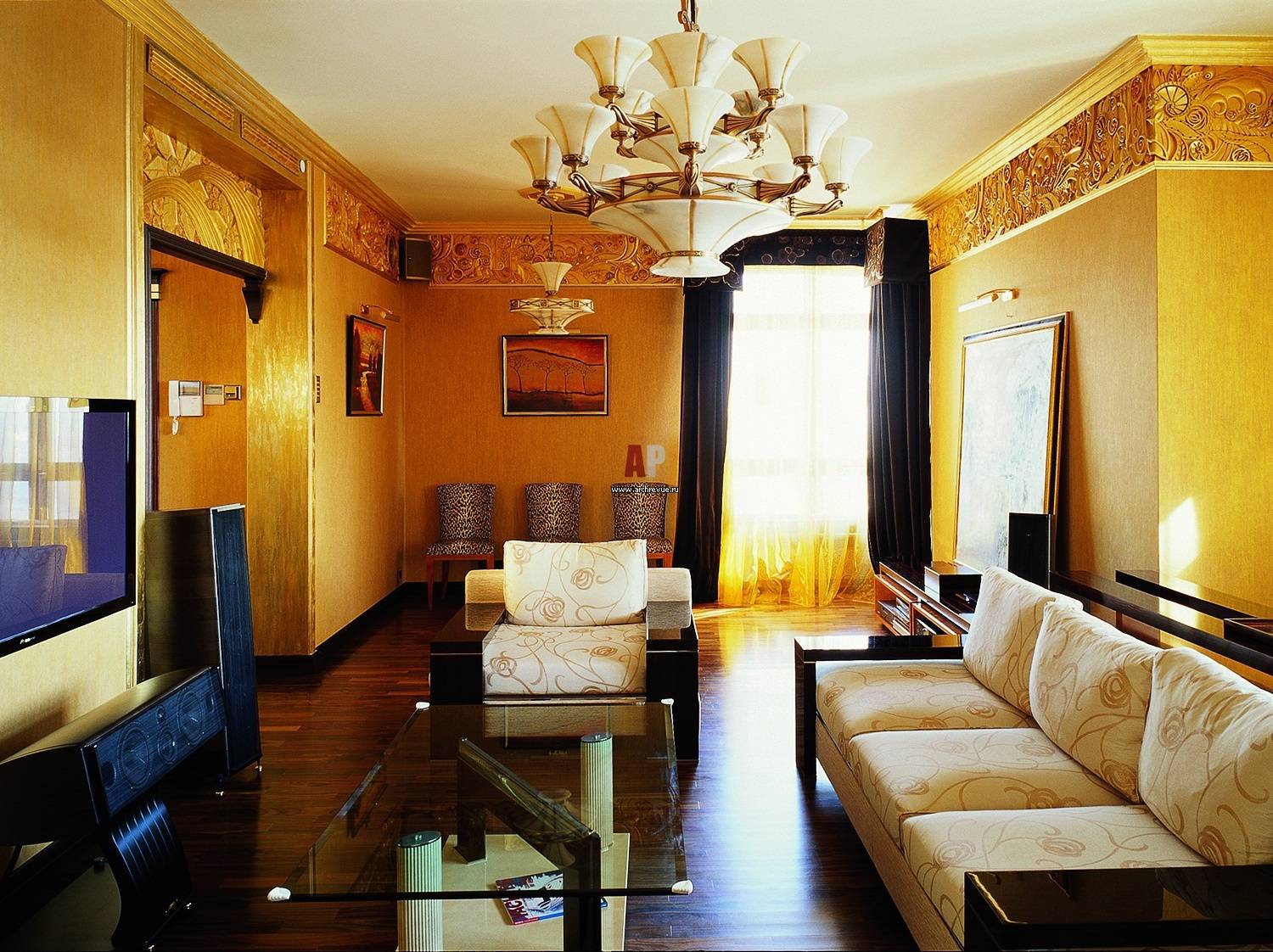Поскольку золотистые оттенки всегда создают позитивное настроение и наполняют любое помещение теплом, гостиная, выполненная в таком тоне, будет смотреться максимально уютно и приветливо. Что касается золотистого декора и аксессуаров, то подобные предметы считаются показателем роскоши и достатка. Главное, чтобы все детали интерьера, начиная от стен и заканчивая декоративными подушками, гармонично дополняли друг друга и соответствовали общей стилистике оформления.
