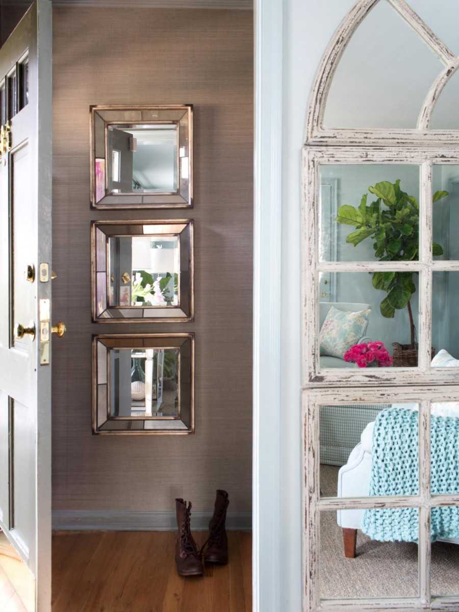 Не всегда есть возможность организовать пространство у входа в квартиру так, как хотелось бы, поэтому можно прибегнуть к нескольким хитростям, чтобы пользоваться отражающей поверхностью с удобством. Правильно повесить зеркало в прихожей — искусство, доступное всем, кто будет знать несколько простых правил.