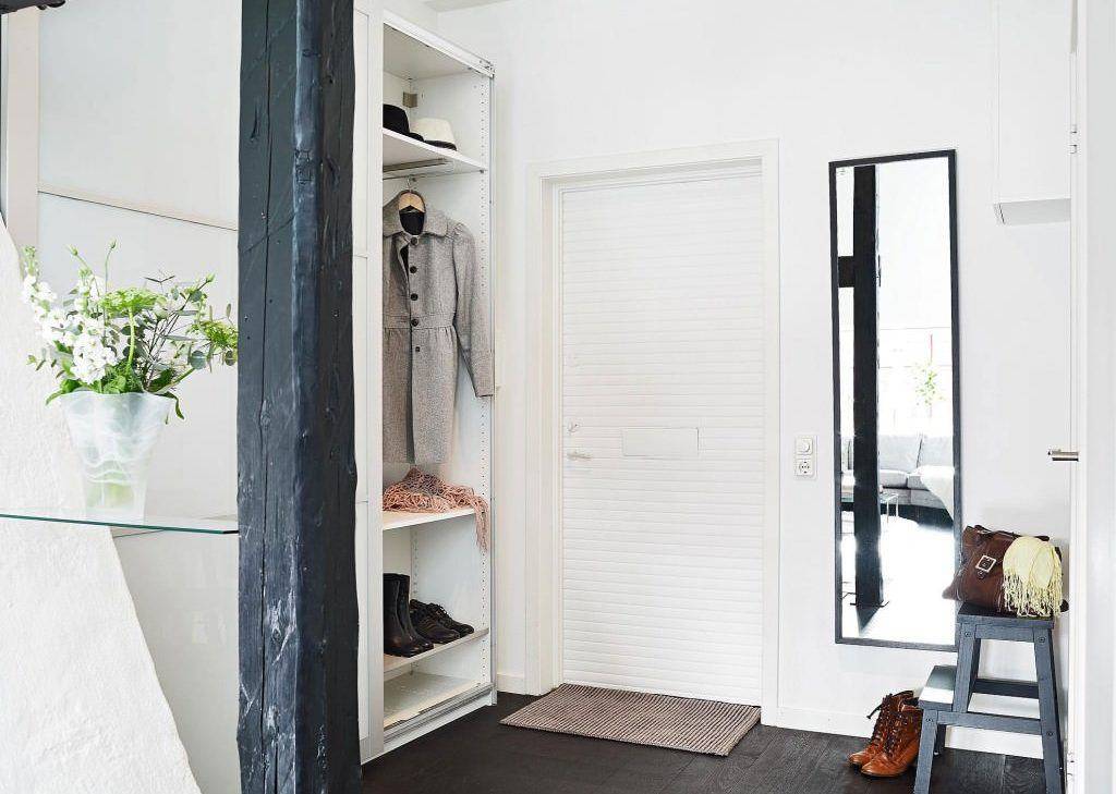 Как можно визуально облегчить прихожую и сохранить количество мест для одежды?