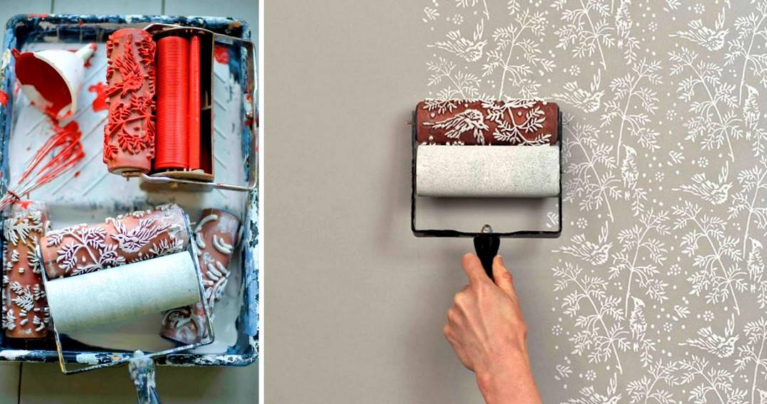 - Когда вся поверхность будет покрыта жидкими обоями, можно обработать ее фактурным валиком. Сделать это нужно не позднее чем через 5 часов после начала работ.