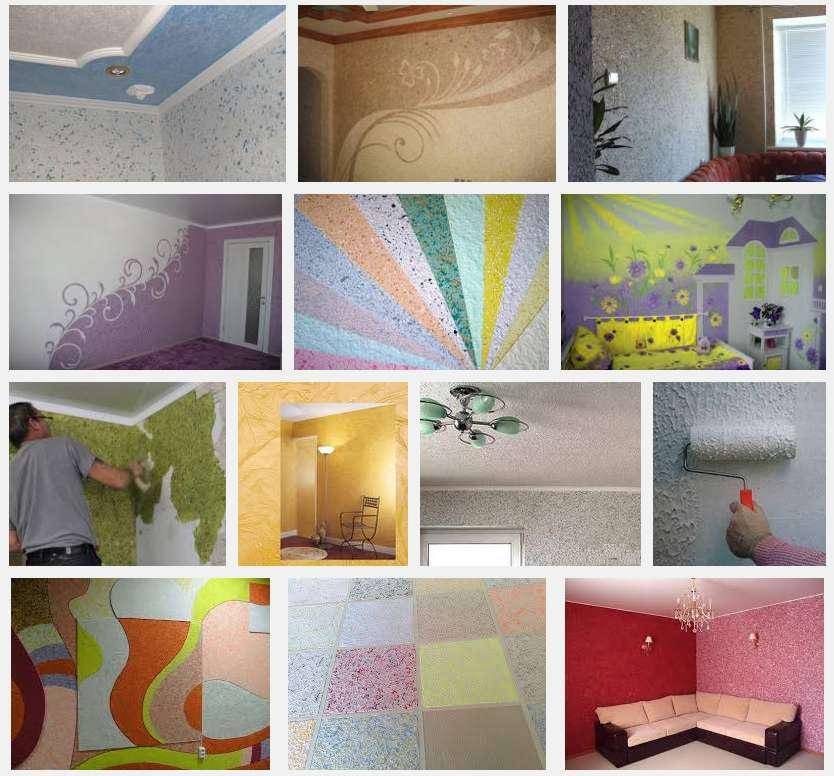 Варианты дизайна стен и потолка с использованием жидких обоев