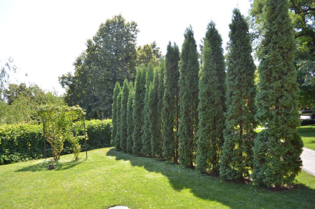 Для высокой зеленой стены подходят следующие высокие кустарники и деревья для живой изгороди: