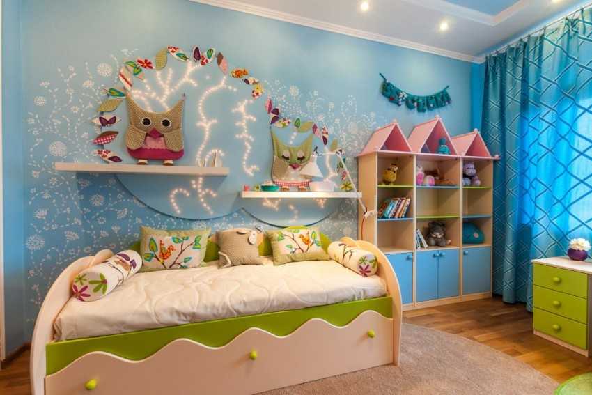 Детская оформляется в зависимости от возраста ребенка – малышам, младшим школьникам придется по вкусу «наивное искусство», сказочные лубочные сюжеты, в нежных, розово-желто-голубых тонах, подросткам – нео-реалистическая живопись, красочный поп-арт, черно-белые трафареты.