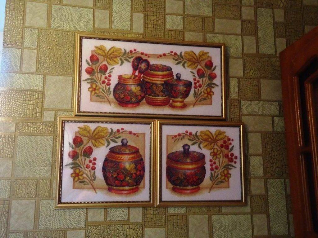 Труд рукодельницы оценивают по достоинству, если для вышитой картины будет подобрано соответствующее обрамление. Одна небольшая вышитая картина отлично смотрится на стене в спальне, детской комнате, кабинете, столовой. А для дизайна гостиной лучше использовать большие полотна или несколько картин в виде ансамбля, помещённого на одной стене.